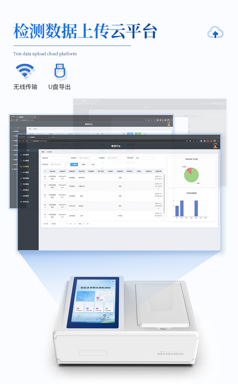 云平臺(tái):儀器帶有監(jiān)管平臺(tái),連接有線/無(wú)線網(wǎng)絡(luò),檢測(cè)結(jié)果直接傳輸至環(huán)境安全監(jiān)管平臺(tái)。