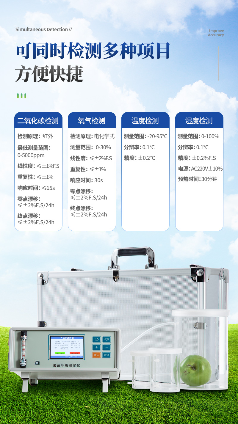 收獲后的果蔬產品仍然是一個獨立的有生命活動的生物體, 為了維持生命, 必然要進行呼吸作用。呼吸作用是果蔬等園藝產品采摘后*主要的生理代謝方式,呼吸強度是衡量呼吸作用強弱的一個指標, 是研究果蔬采摘后生理變化和貯運保鮮中必須掌握的重要指標。