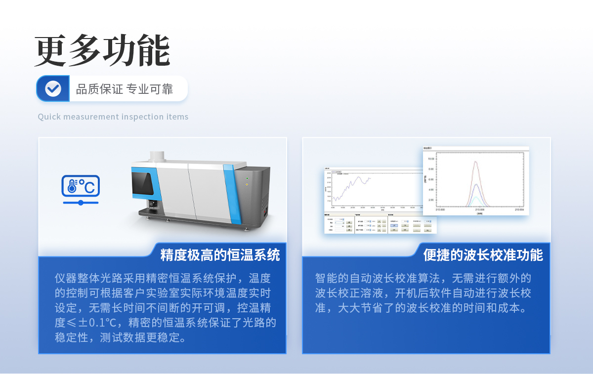 智能的自動波長校準算法,開機后軟件自動進行波長校準,大大節(jié)省了的波長校準的時間和成本。 12、精密的分光系統(tǒng)