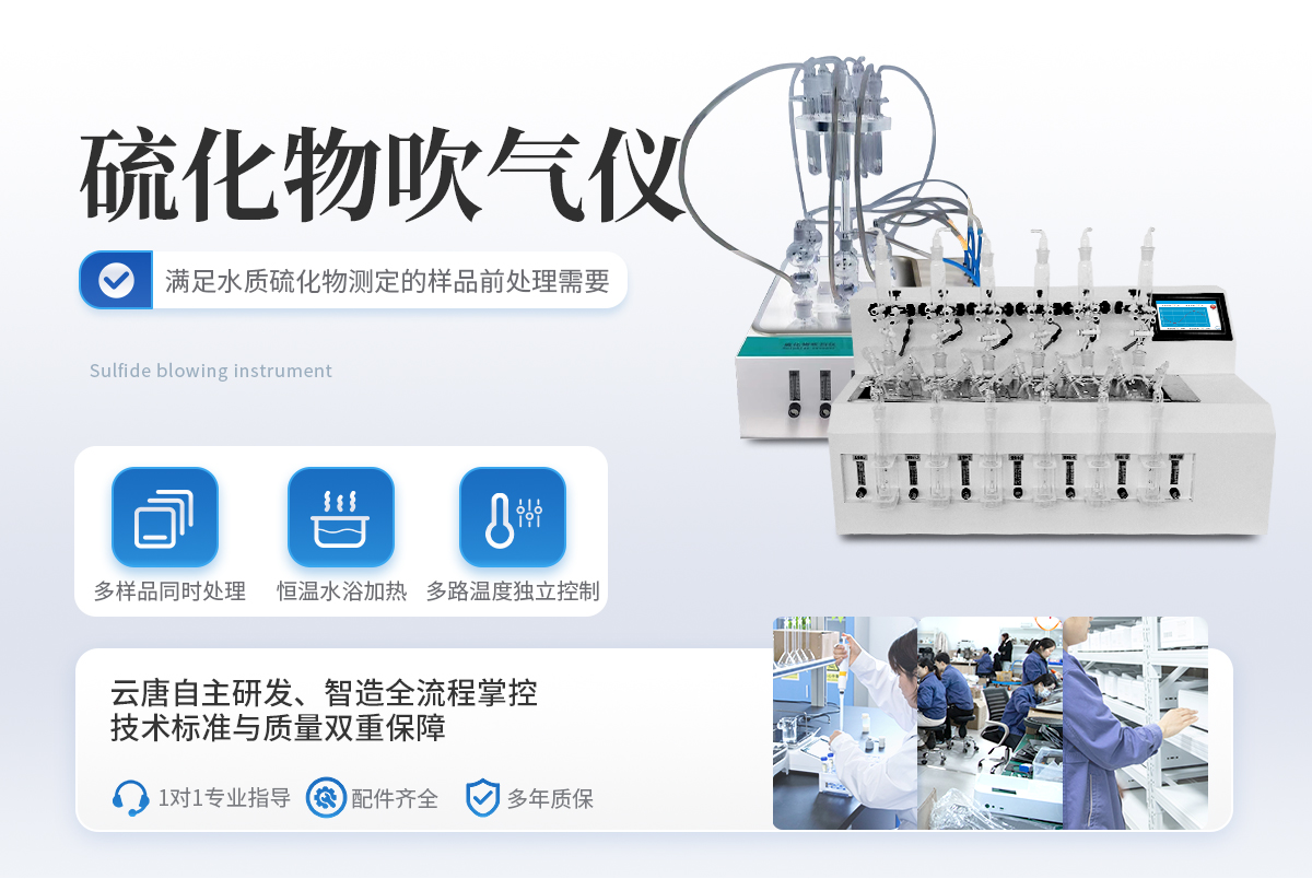 水質硫化物酸化吹氣儀根據(jù)水質硫化物的測定-亞甲基藍分光光度法(碘量法)標準開發(fā)生產的。滿足水質硫化物測定的樣品前處理需要。