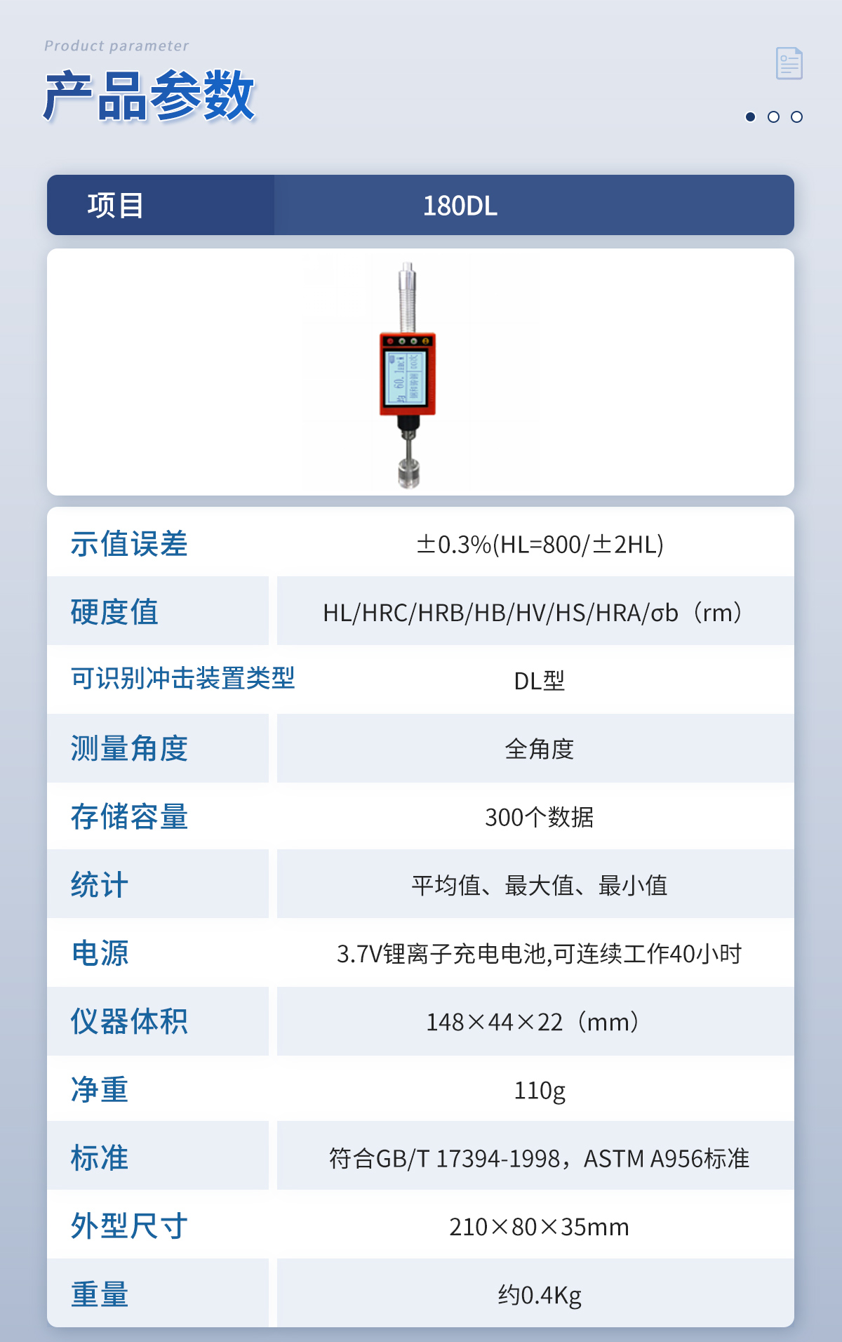 筆式里氏硬度計(jì) YT-180G 技術(shù)參數(shù)