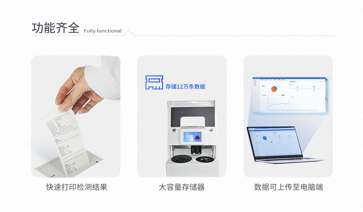 | 人性化界面,操作方便 | 儀器按照試劑要求自動、按時(shí)、按量加入試劑,提高工作效率 | 儀器自動對未正常放置的樣本或異常的樣本進(jìn)行檢查并提示 | 采用**的冷光源,保證了光源的穩(wěn)定性及數(shù)據(jù)的準(zhǔn)確性 | 大容量存儲器,能存儲12萬條數(shù)據(jù),滿足客戶需求 | 內(nèi)置微型熱敏打印機(jī),快速打印檢測結(jié)果,方便數(shù)據(jù)留存 | 可通過數(shù)據(jù)線連接電腦,將檢測的數(shù)據(jù)上傳至電腦端 | 儀器可自動清洗管路,避免試劑污染 | 儀器檢測消耗試劑量和常規(guī)儀器一致 | 儀器具有自動加溫溫控系統(tǒng) |