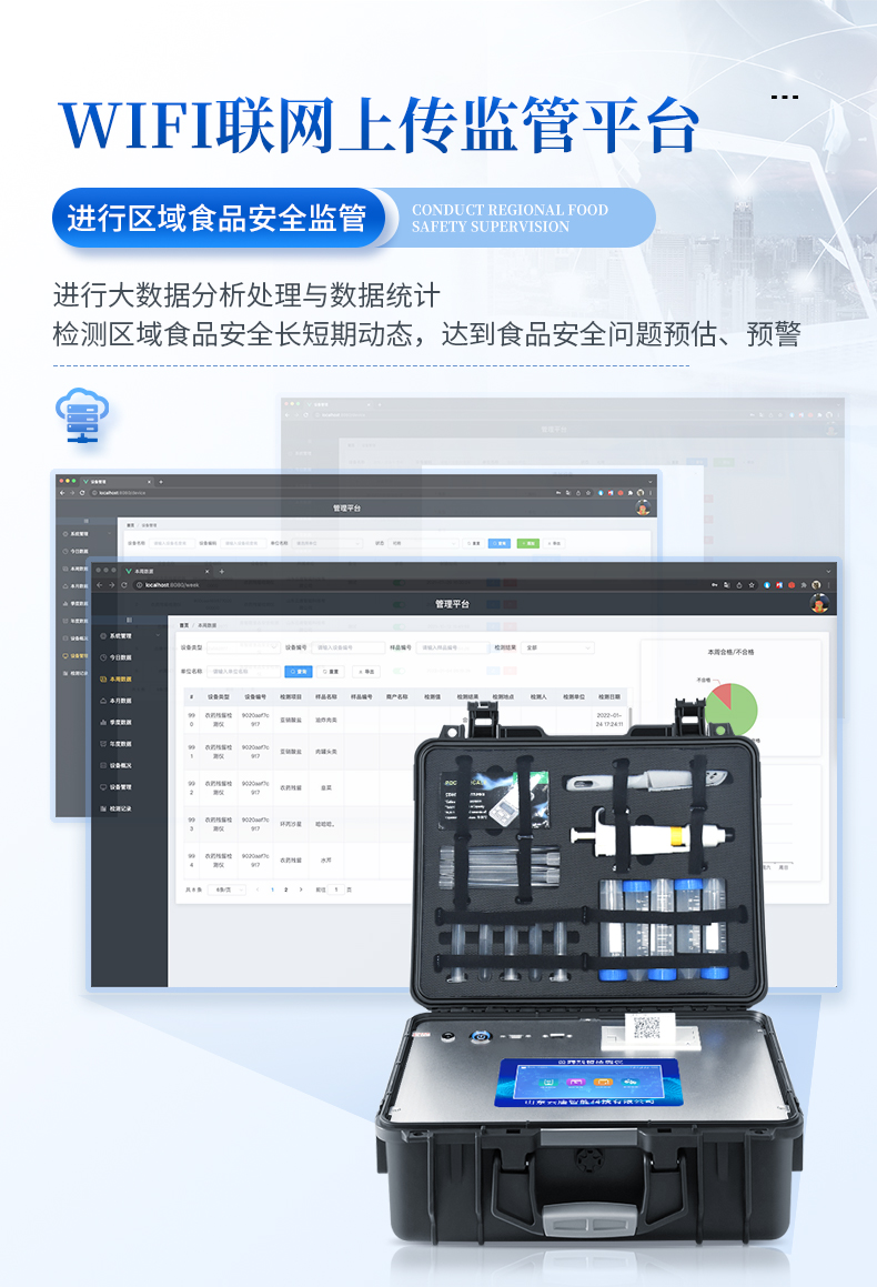 該多功能食品安全檢測儀為集成化食品安全快速檢測分析設(shè)備,廣泛應(yīng)用于市場監(jiān)管局、食品肉產(chǎn)品深加工企業(yè)、學(xué)校食堂、衛(wèi)生部門、畜牧部門、屠宰場、檢驗檢疫部門等單位使用。