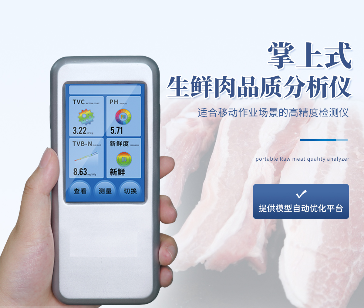 產(chǎn)品介紹: 掌上式生鮮肉新鮮度分析儀 YT-PA 詳細(xì)產(chǎn)品介紹 聯(lián)合中國農(nóng)業(yè)大學(xué)彭彥昆教授團(tuán)隊研發(fā)的掌上式生鮮肉新鮮度分析儀,可用于檢測生鮮肉的TVC、pH、TVB-N、新鮮度、L*、A*、B*等評價指標(biāo)。Palmarter具···2026-02-23