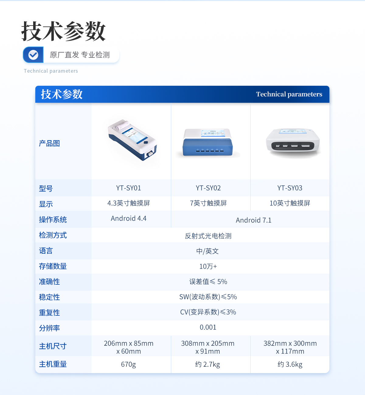 | 1、 7英寸電容式觸摸屏,分辨率:1920:x:1200,內(nèi)部存儲(chǔ):1+8GB | 2、 操作系統(tǒng):Android:7.1 | 3、 檢測(cè)方式:反射式光電檢測(cè) | 4、 適配卡殼:70mm*20mm | 5、 語言:中/英文: | 6、 存儲(chǔ)數(shù)量:10萬+ | 7、 準(zhǔn)確性:誤差值≤:5% | 8、 穩(wěn)定性:SW(波動(dòng)系數(shù))≤5% | 9、 重復(fù)性:CV(變異系數(shù))≤3% | 10、分辨率:0.001 | 11、檢測(cè)通道:6通道檢測(cè) | 12、檢測(cè)時(shí)間:<5秒(單卡及多聯(lián)卡);可對(duì)樣本進(jìn)行膠體金定性/半定量檢測(cè)。 | 13、數(shù)據(jù)傳輸:WiFi、藍(lán)牙、USB、射頻讀卡、外置掃碼模塊(選配) | 14、數(shù)據(jù)處理:可通過通訊端口進(jìn)行數(shù)據(jù)匯總、上傳監(jiān)管平臺(tái)等 | 15、檢測(cè)通道孵育檢測(cè)一體,溫度范圍::室溫:+5℃:~:60℃ | 16、打印機(jī):熱敏打印機(jī)(熱敏打印紙:57*20mm) | 17、接口:USB接口:2個(gè);USB-B接口:1個(gè);LAN接口:1個(gè):;DC電源接口:5.5/2.1mm | 18、電源:輸入:AC100V-240V/1.3A 50Hz;輸出:DC12V/5A | 19、使用環(huán)境:溫度:0~50℃;濕度:0~90%: | 20、主機(jī)尺寸::308mm*205mm*91mm | 21、主機(jī)重量:約:2.7kg |