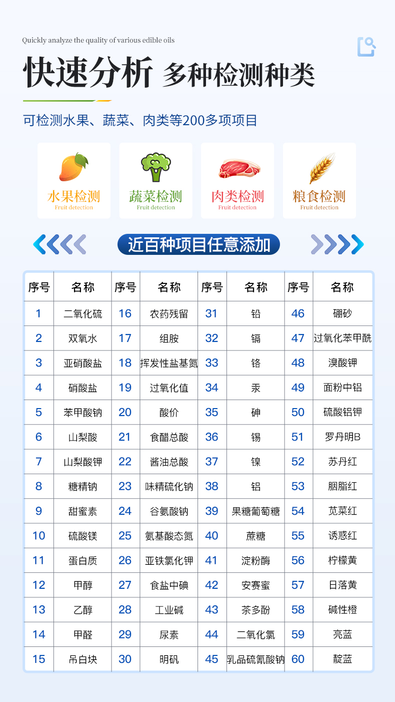 高精度食品安全檢測儀 YT-SA60Z 檢測項(xiàng)目: