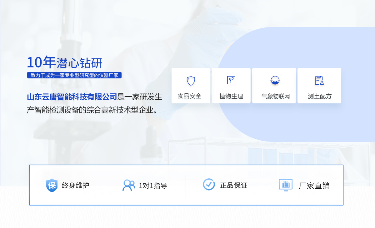 Copyright @ 2019-2022 山東云唐智能科技有限公司 All Rights Reserved. 版權(quán)所有 農(nóng)藥殘留檢測儀 食品檢測儀 細(xì)菌檢測儀源頭廠家