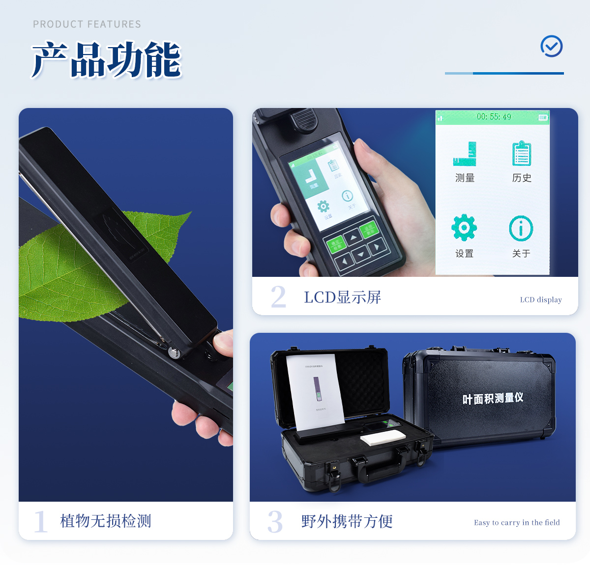 采用開(kāi)放式架構(gòu)體系,自由組合為田間便攜式、實(shí)驗(yàn)室型等掃描、攝像方式的個(gè)性面積測(cè)量?jī)x器,獲取葉片圖形并**分析計(jì)算葉片面積及其相關(guān)參數(shù),廣泛運(yùn)用于農(nóng)藝和林學(xué)等形態(tài)學(xué)、病理學(xué)研究。