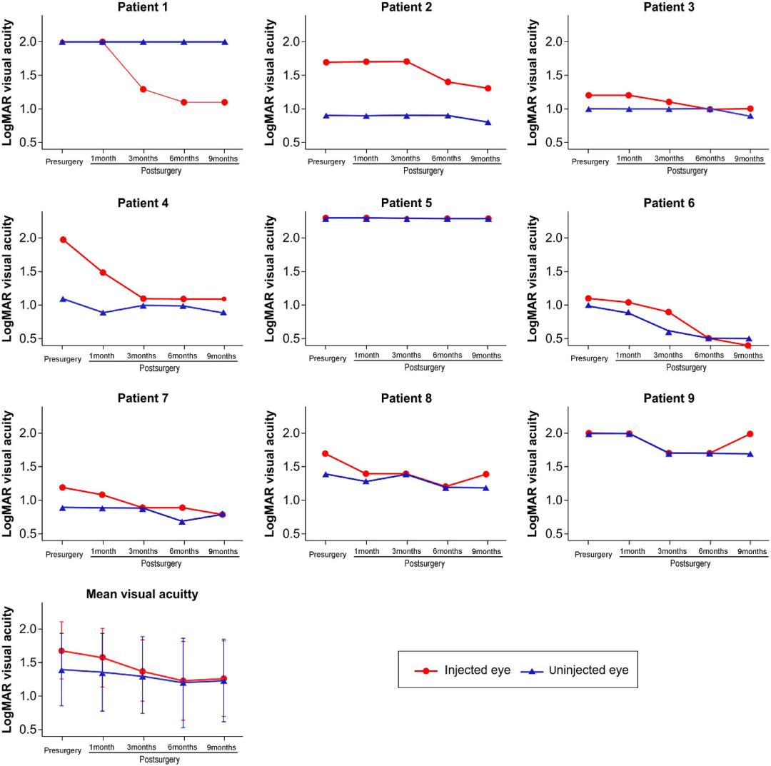 紐福斯生物于2011年在啟動試驗(yàn)性NR082基因治療的IIT臨床試驗(yàn)。在參與試驗(yàn)的9例ND4位點(diǎn)突變LHON患者中,7例者的視力得到明顯改善,最佳視力恢復(fù)到0.8,9名患者平均最佳矯正視力提高0.39logMAR(即接近字母表四行的提高)。8名患者完成了近8年的長期隨訪,無嚴(yán)重不良反應(yīng)事件。2021年1月,紐福斯遞交NR082的IND申請,成為國內(nèi)首款申報(bào)臨床的AAV基因療法。