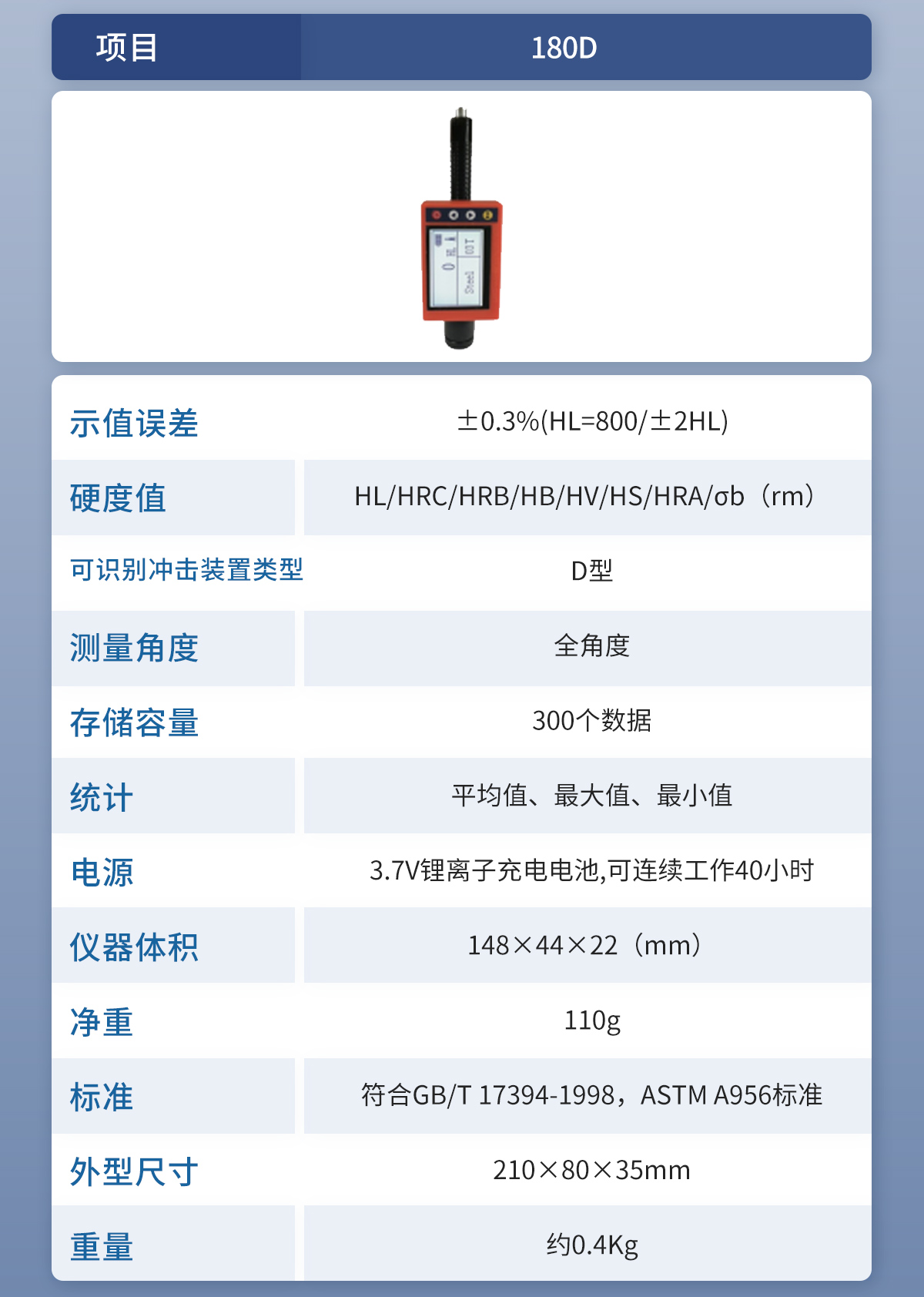 | 標準 | 符合GB/T 17394-1998,ASTM A956標準 |